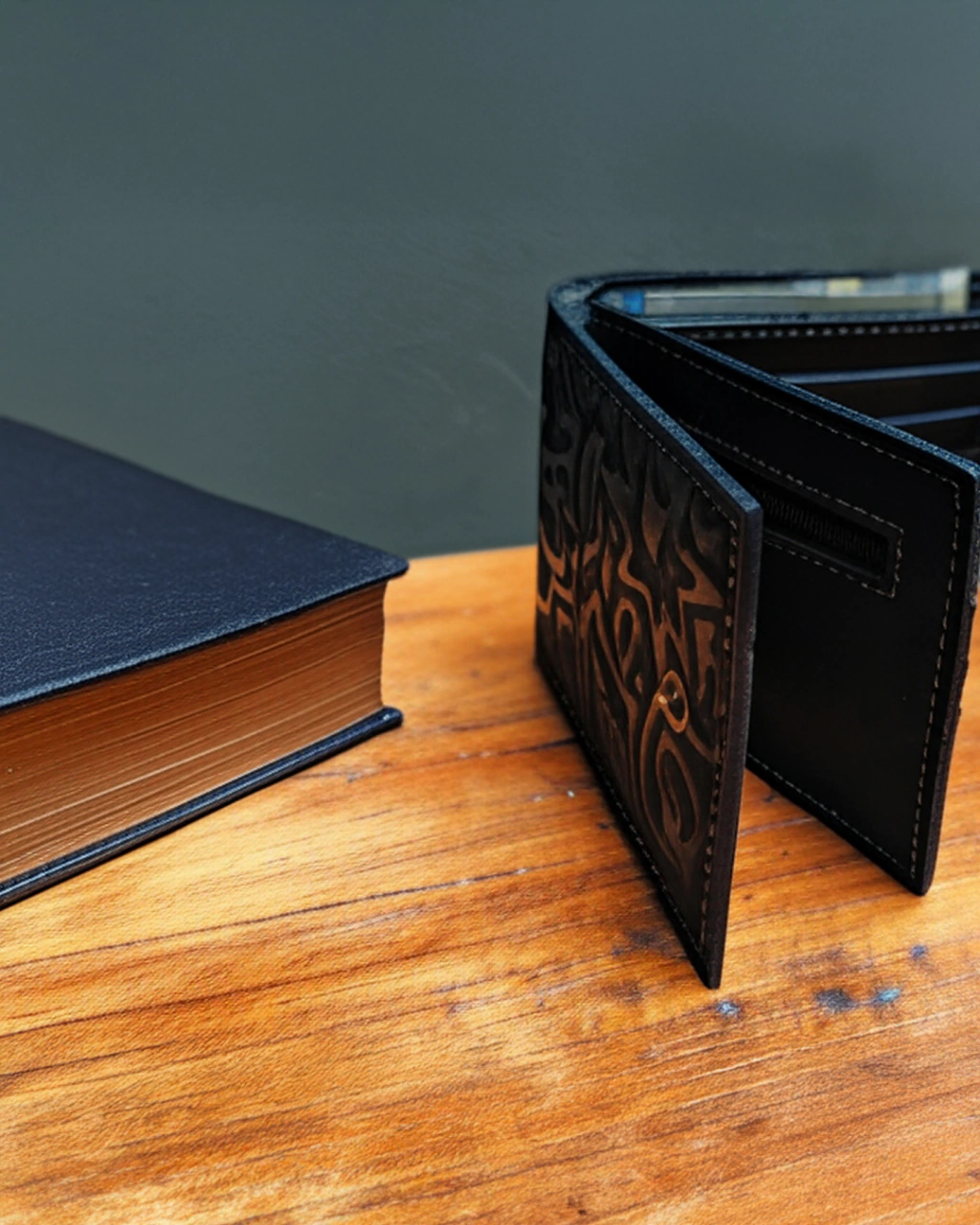 Billetera fabricada en cuero vacuno con botón. Cuenta con tres divisiones, un visor y capacidad para 10 tarjetas.
