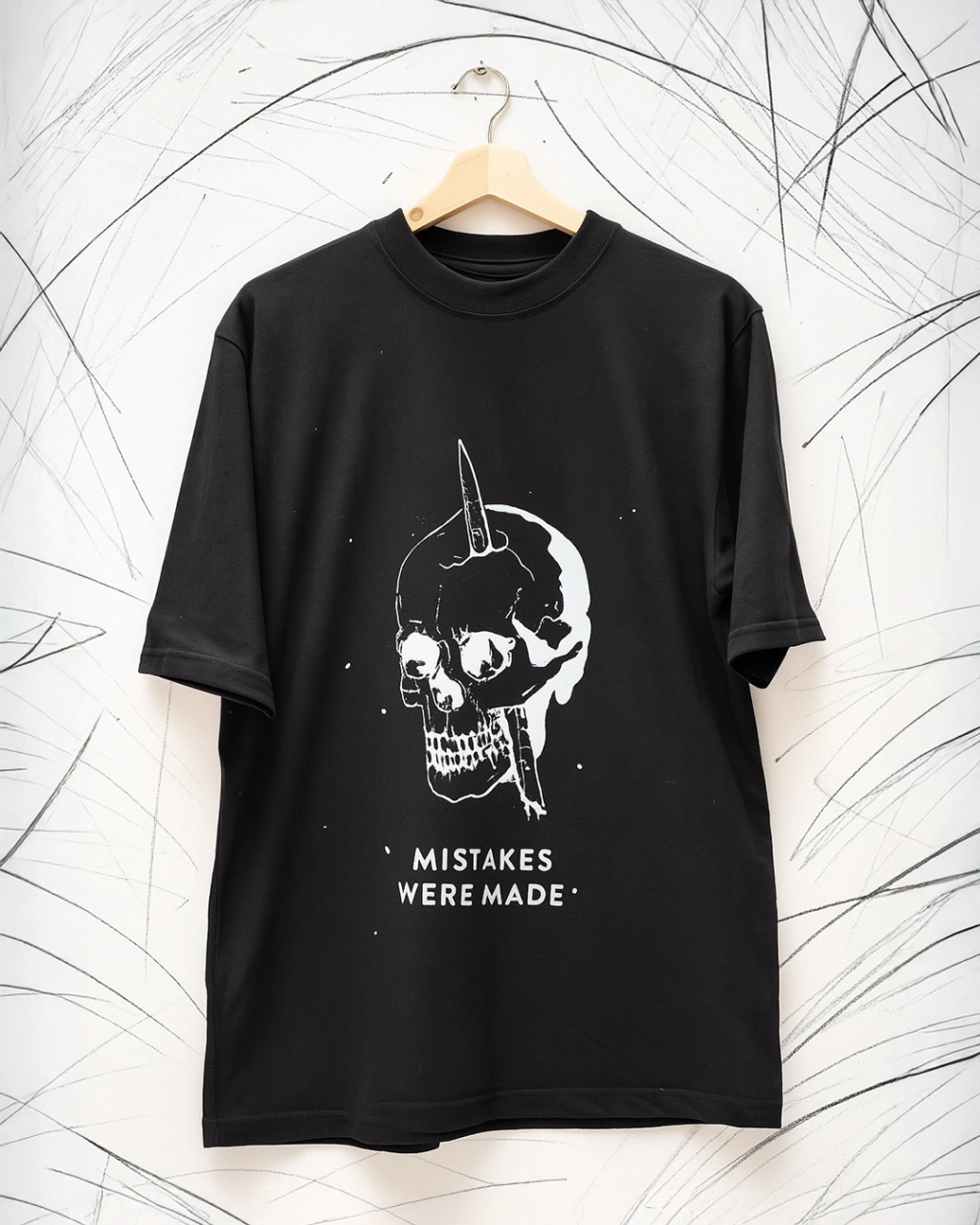 Confeccionada en 100% algodón peinado 24/1, la remera Mistakes Oversize garantiza una textura suave, liviana y resistente, ideal para el uso cotidiano. Su corte amplio y relajado asegura comodidad y libertad de movimiento, manteniendo una silueta moderna y urbana. Con un estampado frontal en tinta blanca sobre negro, de gráfica fuerte y simbólica.